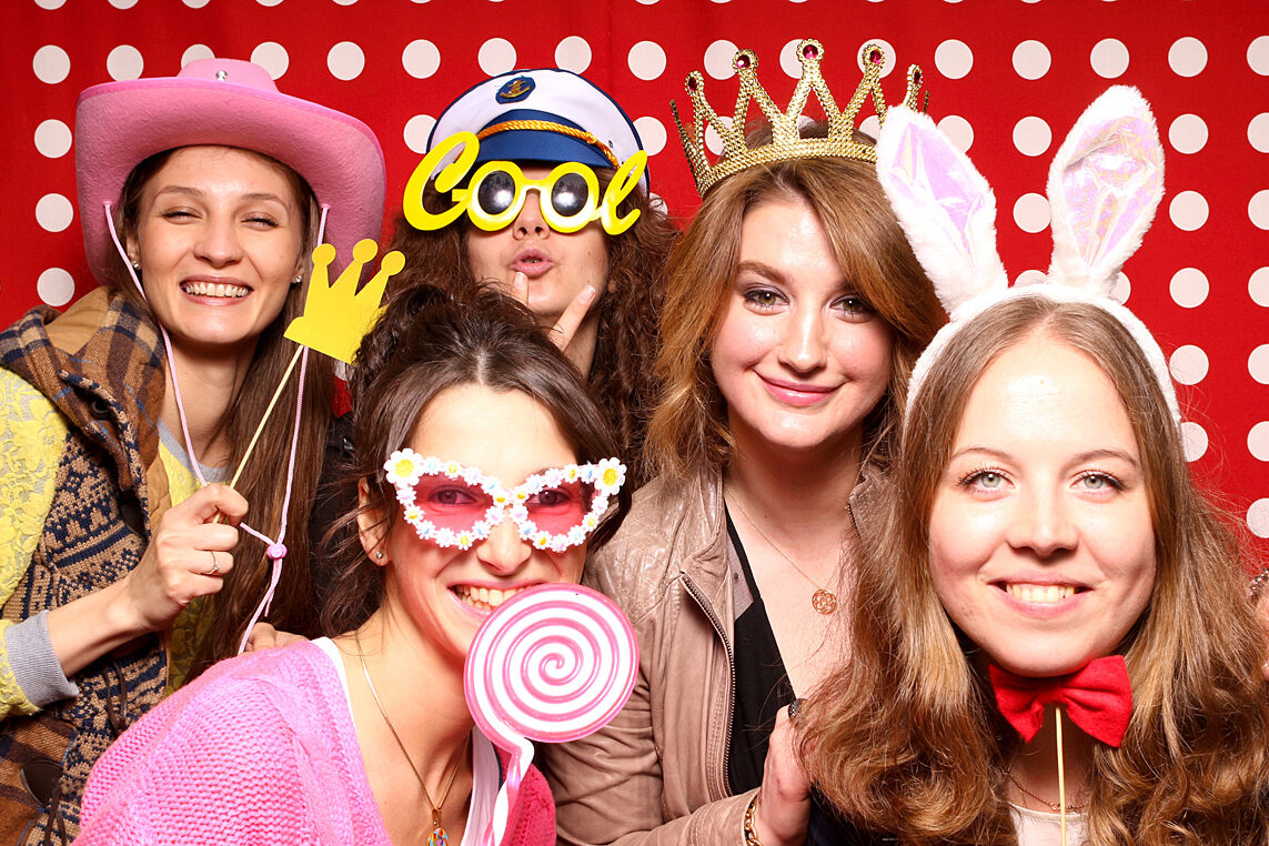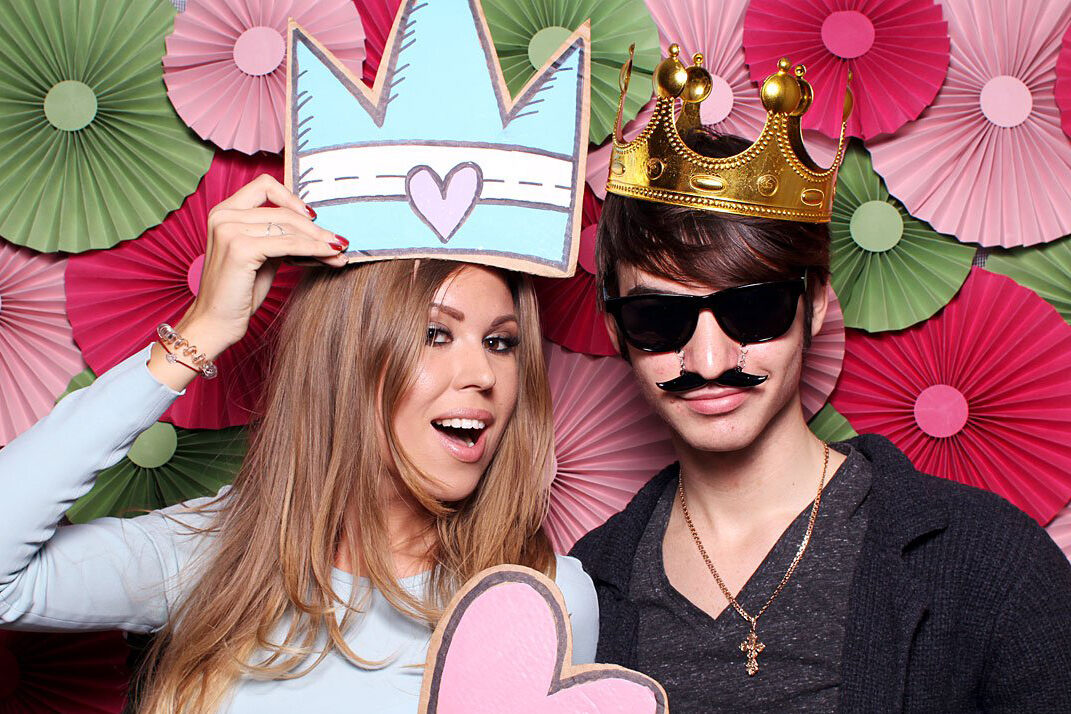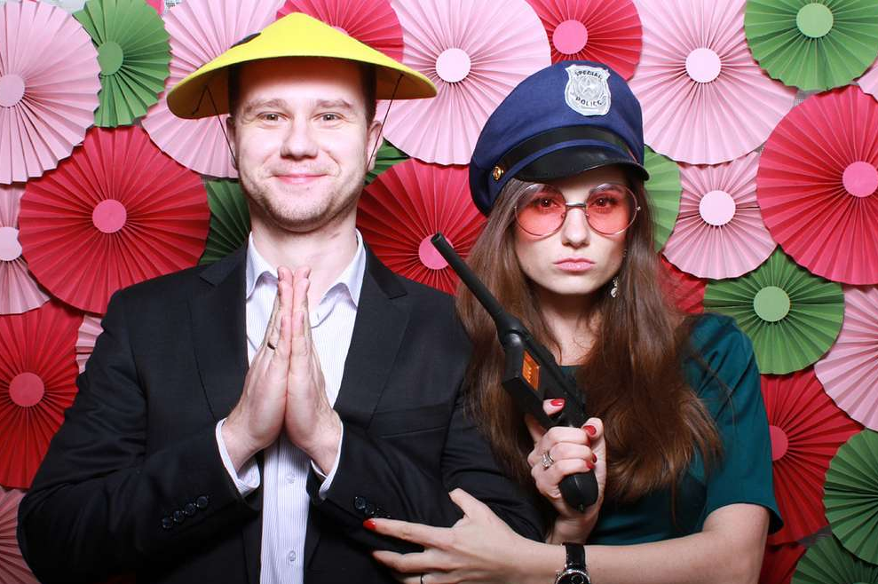 So how does it work? The full setup includes the stylized Retro Photobooth, neon sign “Photos”, professional photo flash, golden umbrella and a beautifully styled photo printer. You grab a prop, strike a pose and just 10 seconds later these unforgettable moments are reprinted onto photo strips, as many as there are people in the photo. The Retro Photo Booth requires the space limited to just 3 m width x 3 m depth x 2.5 m height, but delivers unlimited fun!